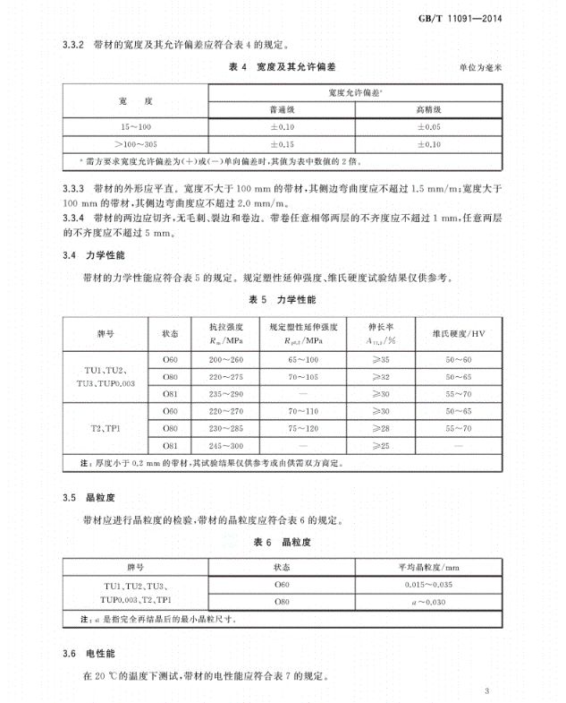 ①增加了TU3、TUP0.003牌号及对应的代号C10200、C10300;