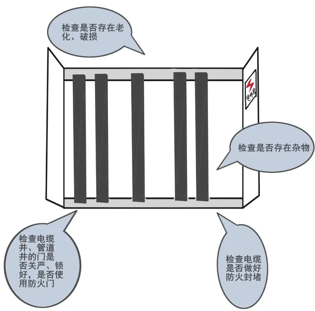 定期检查电缆线路是否存在老化破损问题,楼宇电缆井内的电缆线是否进行了穿管保护。如果没有,应加以整改。